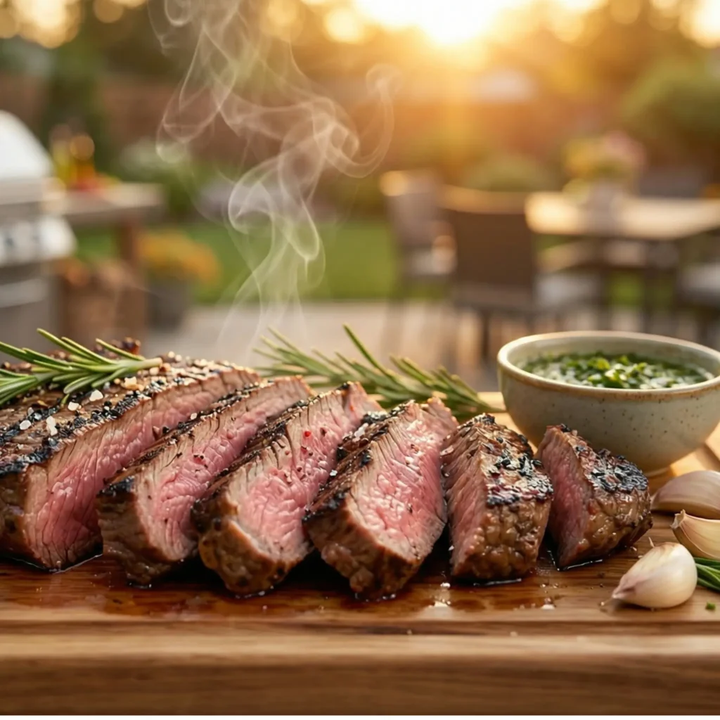 Recipe Instructions: Select a flap steak with good marbling and even thickness. Prepare a marinade using acid, fat, and aromatics. Marinate steak for 4–6 hours (do not exceed 8 hours). Remove steak and pat completely dry. Season with salt, pepper, or dry rub. Preheat grill and create two heat zones. Sear steak over high heat to create a crust. Move to indirect heat and cook until internal temp reaches 130–135°F for medium-rare. Remove steak and let it rest 5–10 minutes. Slice against the grain and serve with sides.
