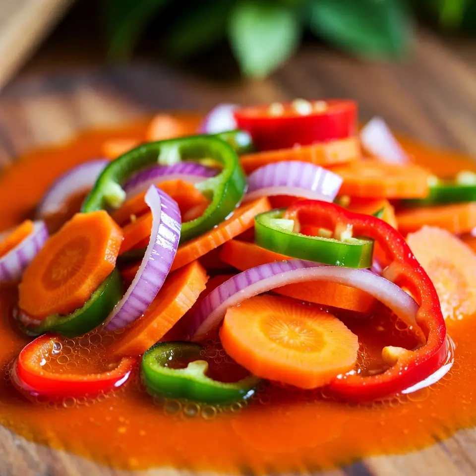 The escovitch sauce is more than a condiment; it’s the heart of the dish. It brings all the flavors together. You’ll need to mix sautéed or raw vegetables with a spicy vinegar-based sauce.