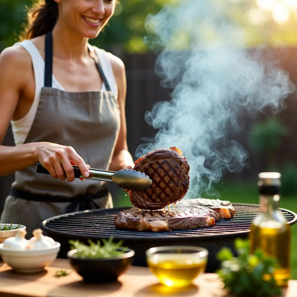 Use oils like avocado or refined grapeseed oil to prevent flare-ups. Pat the steak dry before grilling. This helps get a better sear and avoids oil igniting the flames.